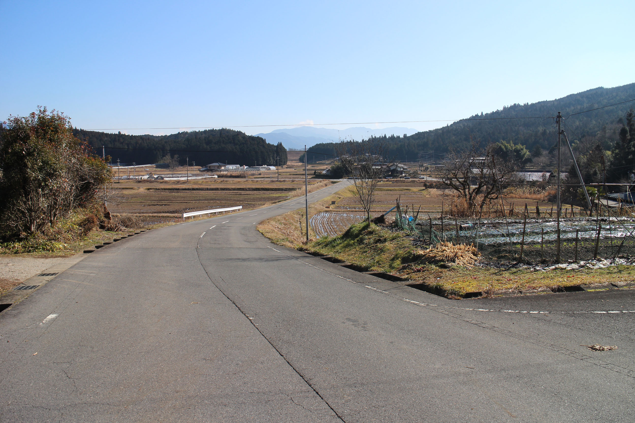 | 見学地点の位置・概要 | 国道256号は木曽川に架かる弥栄(いやさか)橋の交差点で国道19号から分かれ、坂下町の市街地をぬけてから西側の山中に入る。氷坂(こおりざか)と呼ばれる峠を越えて外洞(そとぼら)川をさかのぼるように進んでから、人造湖の椛(はな)の湖を含めたなだらかな上野台地と呼ばれる台地の上を通る。椛の湖の北西側にあたる本郷地区は上野台地のほぼ中央部に位置する。 | |