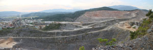 美濃帯は、飛騨外縁帯の南側にあってかなり幅広く分布する地質帯で、岐阜県内でも広範囲にわたる地域を占める。そこは、古生代石炭紀から中生代白亜紀最前期にかけての時期にチャート・石灰岩・砂岩・泥岩・礫岩などの海底に堆積した堆積岩類と海底に噴出した緑色岩(玄武岩質火山岩類)でおもに構成されている。下図に示すように、海洋プレートの上に噴出した海洋プレートの上に噴出した玄武岩質火山岩類は海底や火山島(海山)を形成して、その上にチャートや石灰岩・珪質泥岩などを徐々に堆積させながら大陸へ向かって年間数cmほどの速さで移動していく。海洋プレートは海溝部で大陸の下へ沈み込んでいくが、堆積物はいっしょに沈み込むことができず、はぎ取られたり、大陸側から運び込まれた砂岩・泥岩などとともに大陸側へ押し付けられ、混じり合って複合体(コンプレックス)を作りあげていく。こうした作用を付加作用といい、それにより形成された堆積物は付加体堆積物と呼ばれ、これまでそれらを総称して「美濃帯中・古生層」、「美濃帯中生層」、「美濃帯堆積岩コンプレックス」などといろいろな表現で呼ばれてきたが、ここではこれらを「美濃帯堆積岩類」と呼ぶ。それらは、それまで順に重なっていた地層が付加作用にともなって低角の断層を境にして屋根瓦のように繰り返して覆うように重なったり、複雑に混じりあったメランジュと呼ばれる地質体を構成し、整然とした地層として順番に連続して重なるようなことがほとんどない。そのため全域にわたり個々の地層名を付して表現することがむずかしいため、ここでは構成岩石の種類(岩相)によって表現する。これらの構成岩石は単独でも複数の組合せでもある程度の大きさを持つ地質体を形成しており、その大きさはcmオーダーの礫からkmオーダーの岩体までさまざまである。これらは岩相、形成時期、形成過程などの類似性から複数の地質ユニットに区分され、ユニット間は衝上断層で接することが多いが、その区分による表現はここでは用いない。