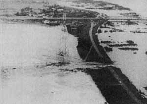 安八町の長良川右岸堤防の決壊 (提供:岐阜日日新聞社) |
