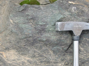 結晶片岩に特徴的に表れ、柱状、板状、鱗片状などの結晶が一定方向に並ぶことで生じる縞状(線状片理)あるいは面状(面状片理)に表れる構造。