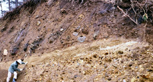 濃飛流紋岩は、岐阜県の南東端にあたる恵那山(標高2191m)付近から北部の飛騨市古川町付近へかけて、幅約35km、延長約100kmにわたり北西~南東方向にのび、岐阜県の約1/4の面積を占める巨大な岩体である。この岩体を構成する岩石のほとんどは、火砕流として流れ出た火山砕屑物がたまって形成された火砕流堆積物からなり、しかもその大部分は堅硬に固結した溶結凝灰岩になっており、厚さ数百mで、水平方向へ20~60kmの広がりをもち、岩相・岩質が類似した火山灰流シートとして何枚にもわたって重なりあっている。それらは大きく6つの活動期(NOHI-1~NOHI-6)に区分されており、岐阜県内にはNOHI-6だけが分布しない。これらの火山岩類には花崗岩類が密接にともなわれ、それらを含めて大きく2期(第1期火成岩類・第2期火成岩類)に分けられる火山-深成複合岩体を形成している。第1期の活動は白亜紀後期の約8,500万~8,000万年前にあり、NOHI-1とNOHI-2の活動と引き続く花崗岩類の活動があった。第2期の活動は約7,500万~6,800万年前にあり、NOHI-3~NOHI-5(おそらくNOHI-6)の活動と引き続く花崗岩類の活動があった。これらは活動の場所を南部から北部へと移しながら巨大な火山岩体を作り上げた。